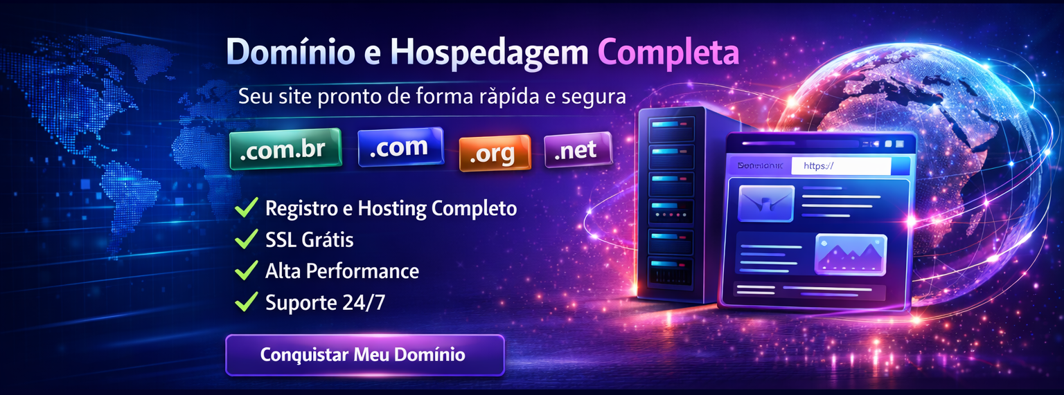 Domínios .com, .com.br, .net, .tech, .org, .online, etc...