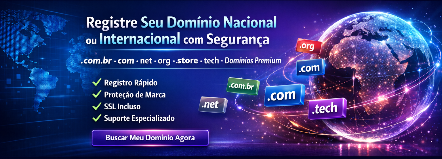 Domínios .com, .com.br, .net, .tech, .org, .online, etc...